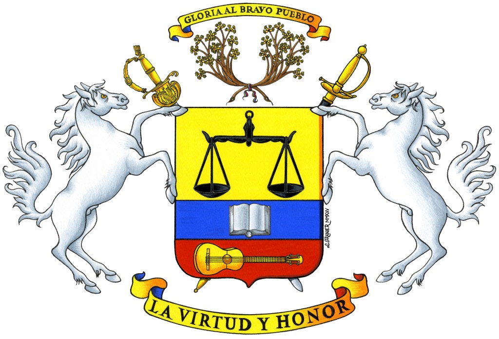 – De gueules, à un cuatro (guitare) d’or posé en fasce.